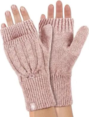 Damen Thermo Fingerlose Handschuhe mit Fäustlinge Kappe | Winter Handschuhe mit Plüsch Fleecefutter (Einheitsgröße, Dusky Rosa)