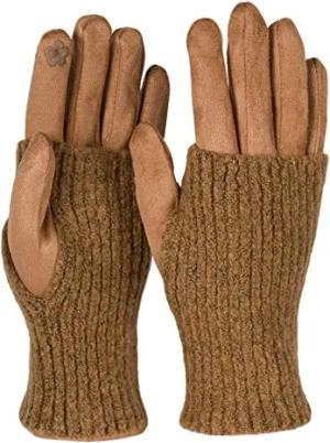 Damen 3 in 1 Touchscreen Handschuhe mit abnehmbarer Strick Stulpe | Winterhandschuhe | 3 Tragevarianten | Weich warm elastisch in vielen Farben, Farbe:Camel