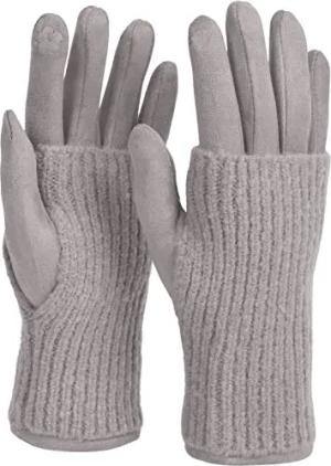 Damen 3 in 1 Touchscreen Handschuhe mit abnehmbarer Strick Stulpe | Winterhandschuhe | 3 Tragevarianten | Weich warm elastisch in vielen Farben, Farbe:Hellgrau