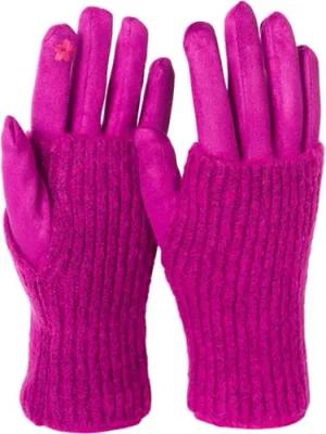 Damen 3 in 1 Touchscreen Handschuhe mit abnehmbarer Strick Stulpe | Winterhandschuhe | 3 Tragevarianten | Weich warm elastisch in vielen Farben, Farbe:Magenta