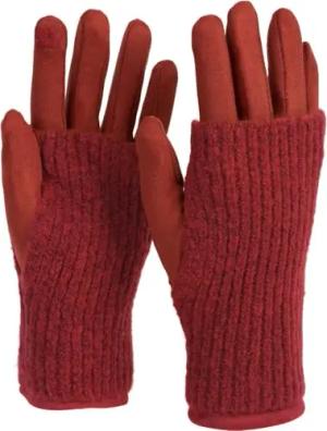 Damen 3 in 1 Touchscreen Handschuhe mit abnehmbarer Strick Stulpe | Winterhandschuhe | 3 Tragevarianten | Weich warm elastisch in vielen Farben, Farbe:Bordeaux-Rot