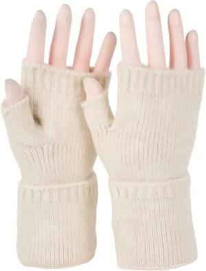 Damen Fingerlose Strickhandschuhe Einfarbig mit Bund, warme Winter Handschuhe 09010052, Farbe:Beige
