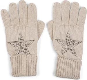 Damen Strickhandschuhe mit Strass Stern Applikation | warme weiche Winterhandschuhe mit doppeltem Bund | elastische Fingerhandschuhe, Farbe:Beige