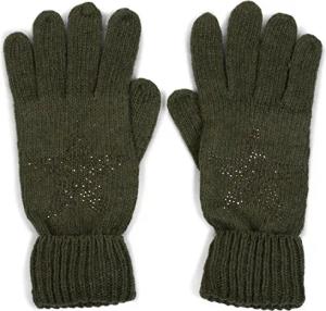 Damen Strickhandschuhe mit Strass Stern Applikation | warme weiche Winterhandschuhe mit doppeltem Bund | elastische Fingerhandschuhe, Farbe:Oliv