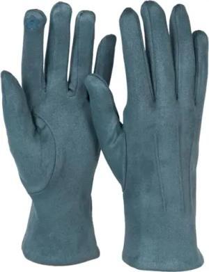 Damen Touchscreen Handschuhe Einfarbig mit Ziernähten, warme Fingerhandschuhe, Winter 09010043, Farbe:Grau-Blau
