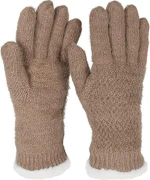 Damen warme Winter Handschuhe mit Reiskorn Muster und Fleece, Thermo Strickhandschuhe, Fingerhandschuhe 09010040, Farbe:Cognac