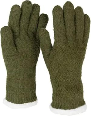 Damen warme Winter Handschuhe mit Reiskorn Muster und Fleece, Thermo Strickhandschuhe, Fingerhandschuhe 09010040, Farbe:Oliv