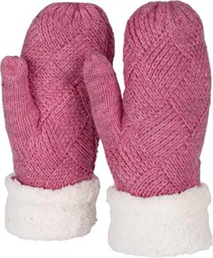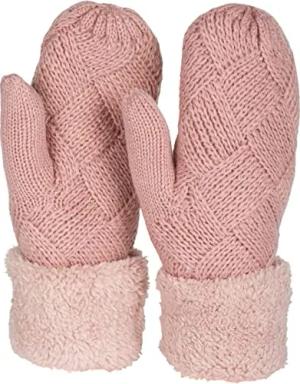Damen warme Winter Strick Fäustlinge, Handschuhe mit Rauten Muster, Thermo Fleece, Strickhandschuhe 09010031, Farbe:Altrose