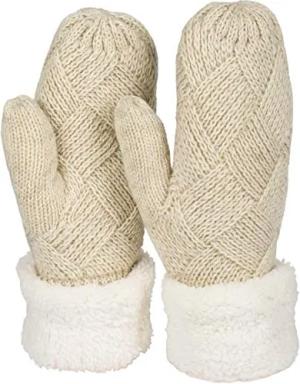 Damen warme Winter Strick Fäustlinge, Handschuhe mit Rauten Muster, Thermo Fleece, Strickhandschuhe 09010031, Farbe:Beige