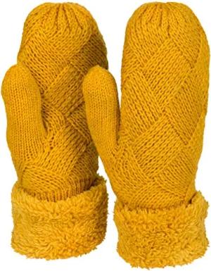 Damen warme Winter Strick Fäustlinge, Handschuhe mit Rauten Muster, Thermo Fleece, Strickhandschuhe 09010031, Farbe:Curry
