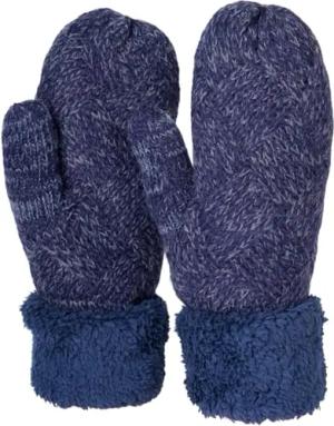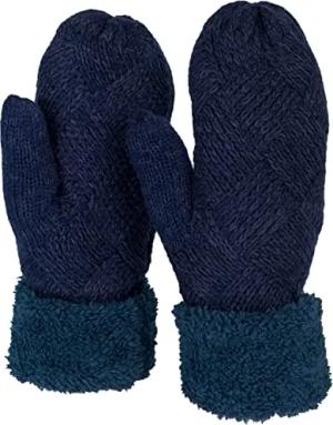 Damen warme Winter Strick Fäustlinge, Handschuhe mit Rauten Muster, Thermo Fleece, Strickhandschuhe 09010031, Farbe:Dunkelblau meliert