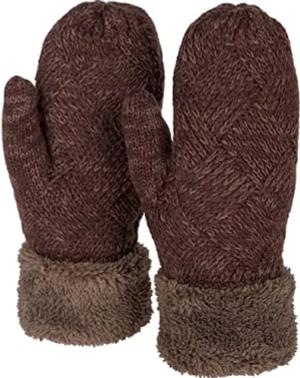 Damen warme Winter Strick Fäustlinge, Handschuhe mit Rauten Muster, Thermo Fleece, Strickhandschuhe 09010031, Farbe:Dunkelbraun