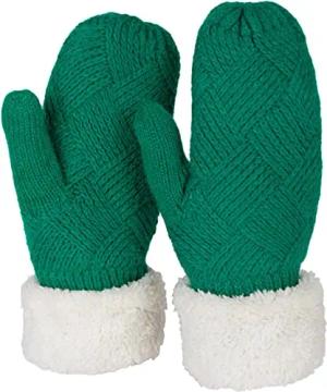 Damen warme Winter Strick Fäustlinge, Handschuhe mit Rauten Muster, Thermo Fleece, Strickhandschuhe 09010031, Farbe:Grün