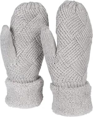Damen warme Winter Strick Fäustlinge, Handschuhe mit Rauten Muster, Thermo Fleece, Strickhandschuhe 09010031, Farbe:Hellgrau