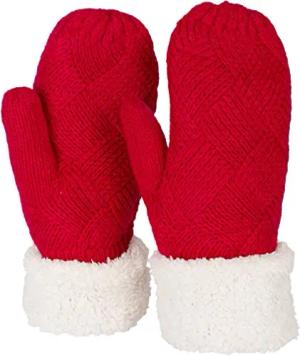 Damen warme Winter Strick Fäustlinge, Handschuhe mit Rauten Muster, Thermo Fleece, Strickhandschuhe 09010031, Farbe:Rot