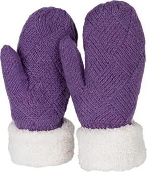 Damen warme Winter Strick Fäustlinge, Handschuhe mit Rauten Muster, Thermo Fleece, Strickhandschuhe 09010031, Farbe:Violett