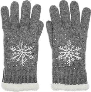 GLV009 warm gefütterte Damen Strick Handschuhe mit gesticktem Eiskristall und dezentem Strass, Farbe:grau, Größe:One Size