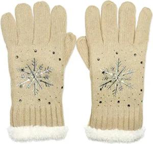 GLV009 warm gefütterte Damen Strick Handschuhe mit gesticktem Eiskristall und dezentem Strass, Farbe:sand, Größe:One Size