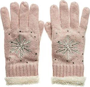 GLV009 warm gefütterte Damen Strick Handschuhe mit gesticktem Eiskristall und dezentem Strass, Farbe:rosa, Größe:One Size