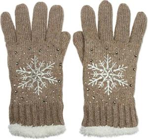 Damen Handschuhe mit gestickter Schneeflocke, Strass und Fleece, warme Thermo Winter Strickhandschuhe 09010020, Farbe:Braun