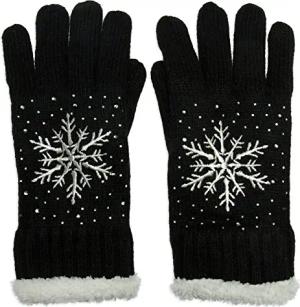 GLV009 warm gefütterte Damen Strick Handschuhe mit gesticktem Eiskristall und dezentem Strass, Farbe:schwarz, Größe:One Size