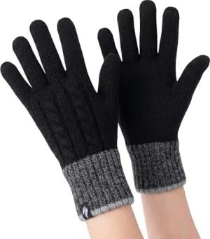 EEM Damen Strickhandschuhe, weiche Wolle, Thinsulate Thermofutter, Zopfmuster, schwarz S/M