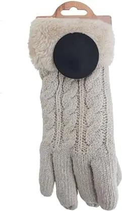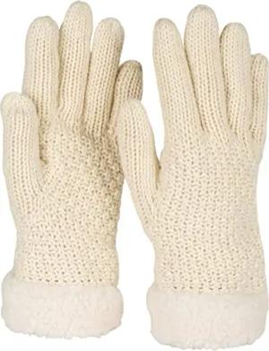 Damen warme Winter Handschuhe mit Perlmuster und Fleece, Thermo Strickhandschuhe, Fingerhandschuhe 09010032, Farbe:Beige