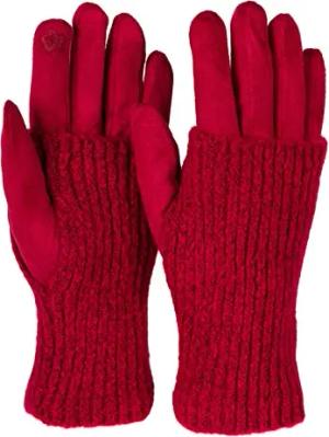 Damen 3 in 1 Touchscreen Handschuhe mit abnehmbarer Strick Stulpe | Winterhandschuhe | 3 Tragevarianten | Weich warm elastisch in vielen Farben, Farbe:Bordeaux-Rot