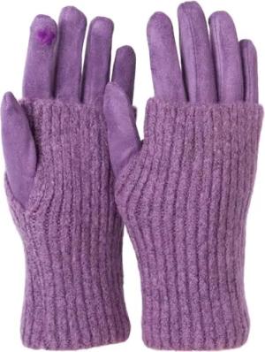 Damen 3 in 1 Touchscreen Handschuhe mit abnehmbarer Strick Stulpe | Winterhandschuhe | 3 Tragevarianten | Weich warm elastisch in vielen Farben, Farbe:Flieder