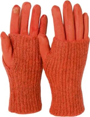 Damen 3 in 1 Touchscreen Handschuhe mit abnehmbarer Strick Stulpe | Winterhandschuhe | 3 Tragevarianten | Weich warm elastisch in vielen Farben, Farbe:Orange