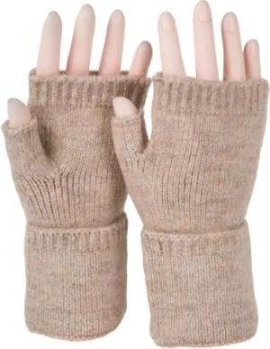 Damen Fingerlose Strickhandschuhe Einfarbig mit Bund, warme Winter Handschuhe 09010052, Farbe:Hellbraun meliert