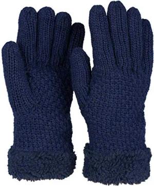 Damen warme Winter Handschuhe mit Perlmuster und Fleece, Thermo Strickhandschuhe, Fingerhandschuhe 09010032, Farbe:Dunkelblau