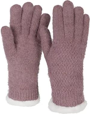 Damen warme Winter Handschuhe mit Reiskorn Muster und Fleece, Thermo Strickhandschuhe, Fingerhandschuhe 09010040, Farbe:Mauve