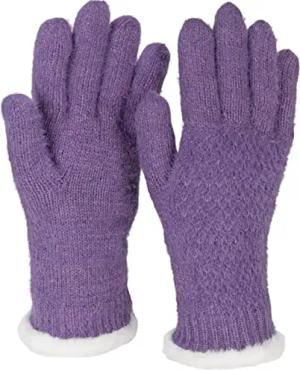 Damen warme Winter Handschuhe mit Reiskorn Muster und Fleece, Thermo Strickhandschuhe, Fingerhandschuhe 09010040, Farbe:Violett