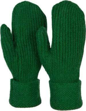 Damen Winter Strick Fäustlinge Einfarbig mit gemustertem Bund, warme Fausthandschuhe, Strickhandschuhe 09010046, Farbe:Dunkelgrün