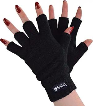 Damen Thermo Handschuhe Ohne Finger Winter Fleece Winddichte Fingerlose Thinsulate Handschuhe (Einheitsgröße, Schwarz)