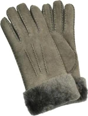 Damen-Handschuhe aus grauem Schafsleder und Wildleder mit Fellmanschette