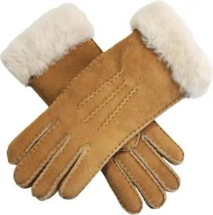 Damen-Handschuhe, hellbraun, echtes echtes Schaffell und Wildleder, warme Handschuhe