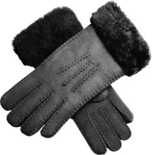 Damen-Handschuhe aus schwarzem Schaffell und Wildleder mit Fellmanschette