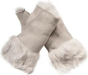 Damen Handschuhe Winter Warm Hellgrau Shearling Toskana Schaffell Wildleder Fingerloses Design