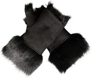 Damen Handschuhe Winter Warm Schwarz Shearling Toskana Schaffell Wildleder Fingerloses Design