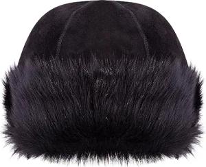 Schwarz 100% Schafsfell Lammfell Leder Toscana Beanie Runde Uschanka Russische Mütze