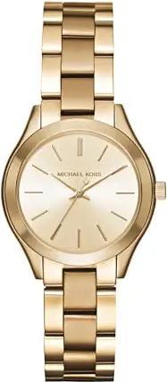 Damen Quartz Armbanduhr, 39.00mm Gehäusegröße mit champagnerfarben analog Zifferblatt und Gold Metallarmband Armband MK3191