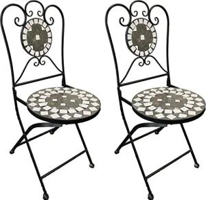 Mosaik Gartenstuhl 2X Balkonstuhl Terassenstuhl klappbar Kreis Design Klappstuhl Bistrostuhl Mosaikstuhl Anthrazit/Grau