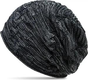 MU154 gefütterte Feinstrick Beanie Mütze mit stylischem Flecht Muster, Farbe:schwarz/grau, Größe:One Size