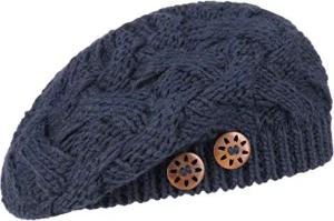 Jil Strickbaske mit Knöpfen Made in Germany Französische Damenbaske Strickmütze Schurwolle Damen Herbst Winter dunkelblau One Size