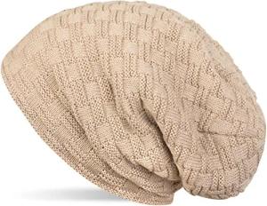 Damen Strick Beanie Mütze mit Bubblemuster, Einfarbige Winter, Raspberry Pattern Strickmütze 04024193, Farbe:Beige