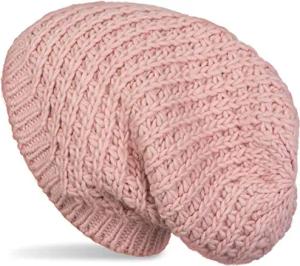 Unisex Strick Beanie Mütze grob gestrickt, Slouch Longbeanie, Grobstick Winter Strickmütze 04024158, Farbe:Altrose