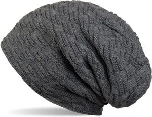 Unisex Strick Beanie Mütze grob gestrickt, Slouch Longbeanie, Grobstick Winter Strickmütze 04024158, Farbe:Grau