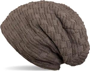 Unisex Strick Beanie Mütze grob gestrickt, Slouch Longbeanie, Grobstick Winter Strickmütze 04024158, Farbe:Taupe
